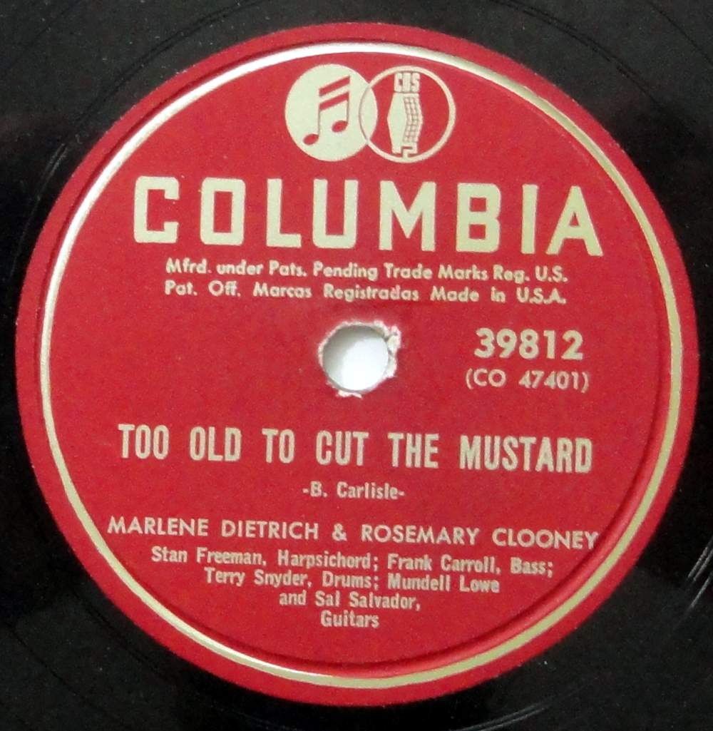“Too Old To Cut the Mustard,” Marlene Dietrich and Rosemary Clooney. George’s aunt and the German screen legend singing about erectile dysfunction and Ovaltine. Have a listen here, if you aren’t too old.