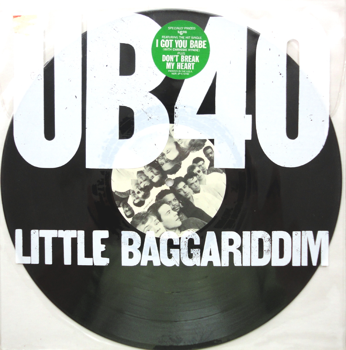 Little Baggariddim was a 1985 six-track EP that was released in both a “regular” and “picture disc” format. The picture disc was actually your standard issue black vinyl packaged in a clear plastic sleeve and bearing a label with a photo of the band. Neither the sleeve nor the label makes this a picture disc.