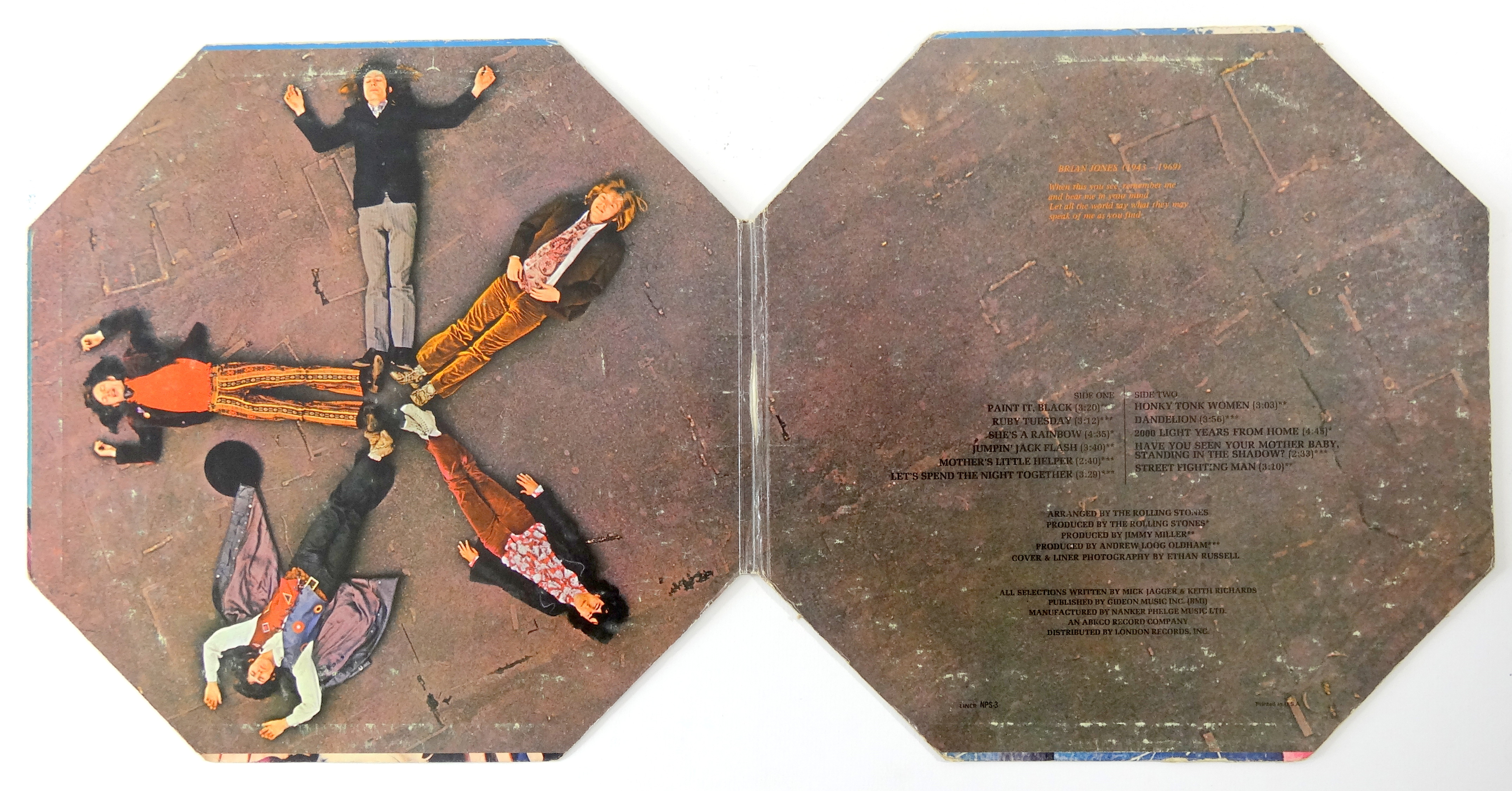 The Rolling Stones are responsible for some of the more interesting packaging of the rock and roll era, and this octagonal gatefold sleeve is among the best. Aside from that, the American and UK track listings differ slightly, making both the London and Decca versions essential for completists.