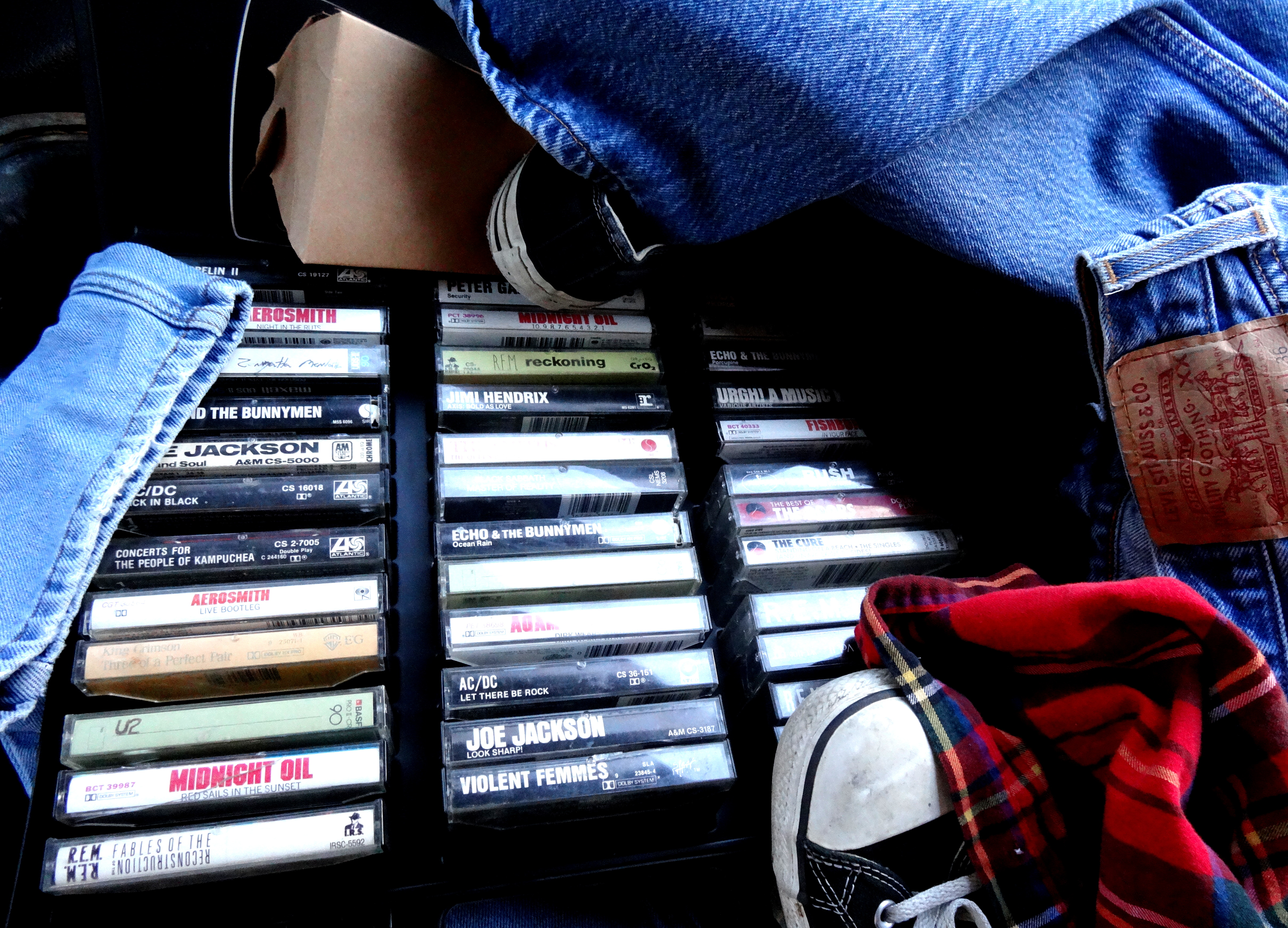 I couldn’t wait to show him my new world, so the first night he was there we jumped into his Toyota and headed over to the Chinese restaurant near my apartment.  Now, here’s the thing: Lee G.’s little blue car was essentially a rolling apartment.  The boy loved road trips — Athens, Asheville, Memphis — Lee G. was always coming from or headed toward somewhere.  The back seat of his car was unusable as a seat, its function now no more than a stand for the several open briefcase-style cassette cases that accompanied him everywhere.  He owned hundreds of tapes.