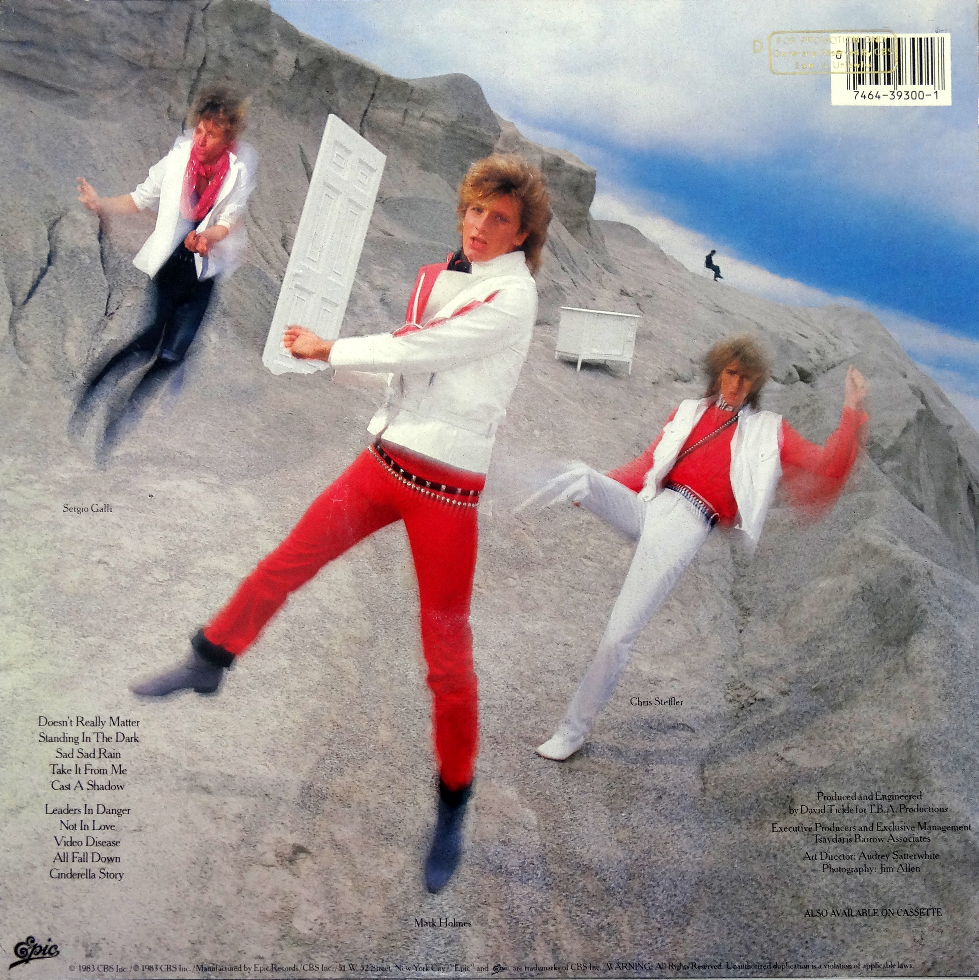 But listen, we all know why we’re here: It’s that cover. Pouty lipped Mark Holmes gives us a “don’t hate me because I’m beautiful” hush while band mates Sergio Galli and Chris Steffler make sure we notice their lead singer’s ass. On the horizon sits a mysterious lone figure, because this is the eighties and that’s arty and the album is entitled Standing in the Dark so obviously the only dark figure should be seated.