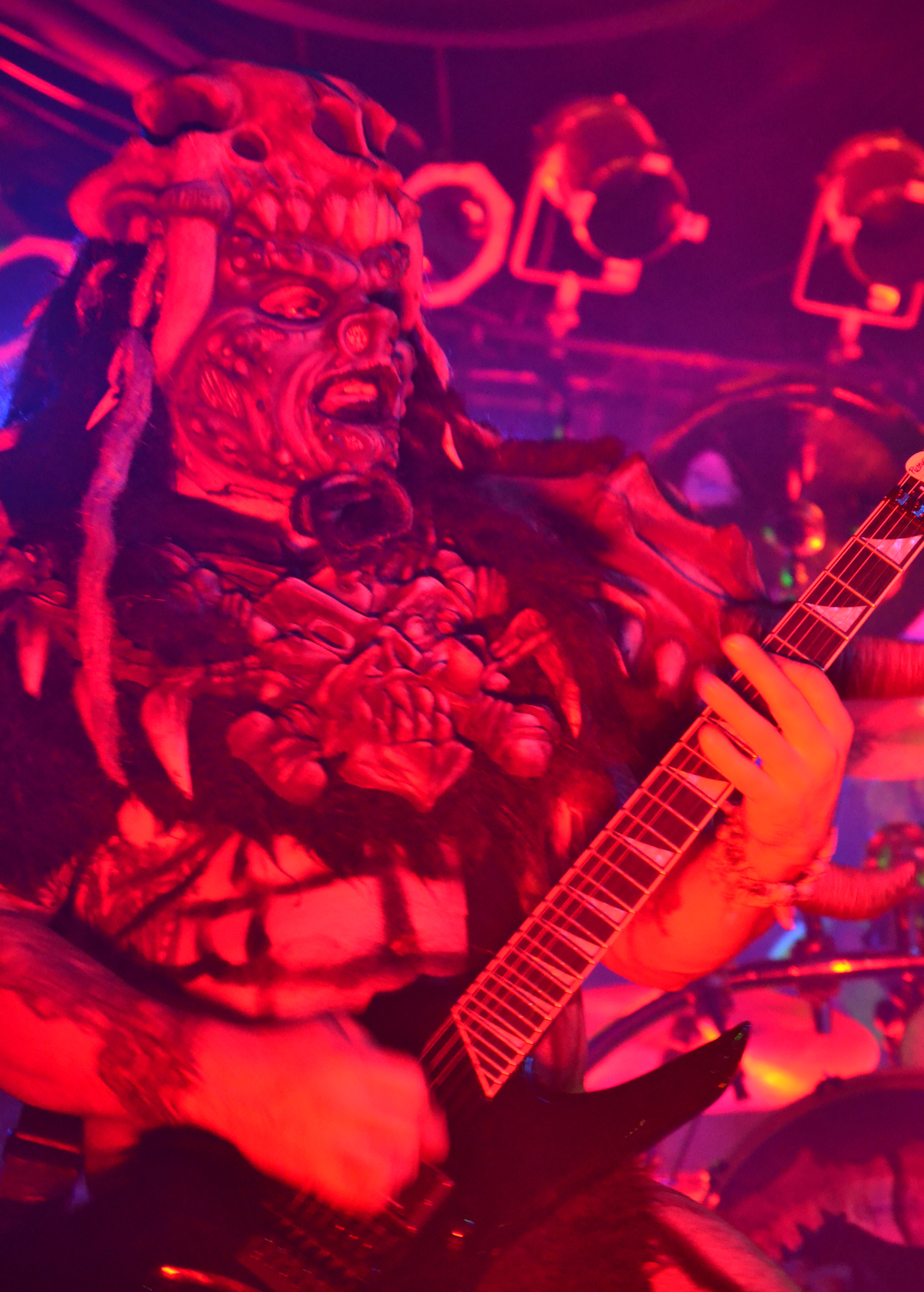 The cartoon rockers brought the full show—the blood spitting gargoyles, the ball swinging henchmen, the whole bit—and the crowd loved it.