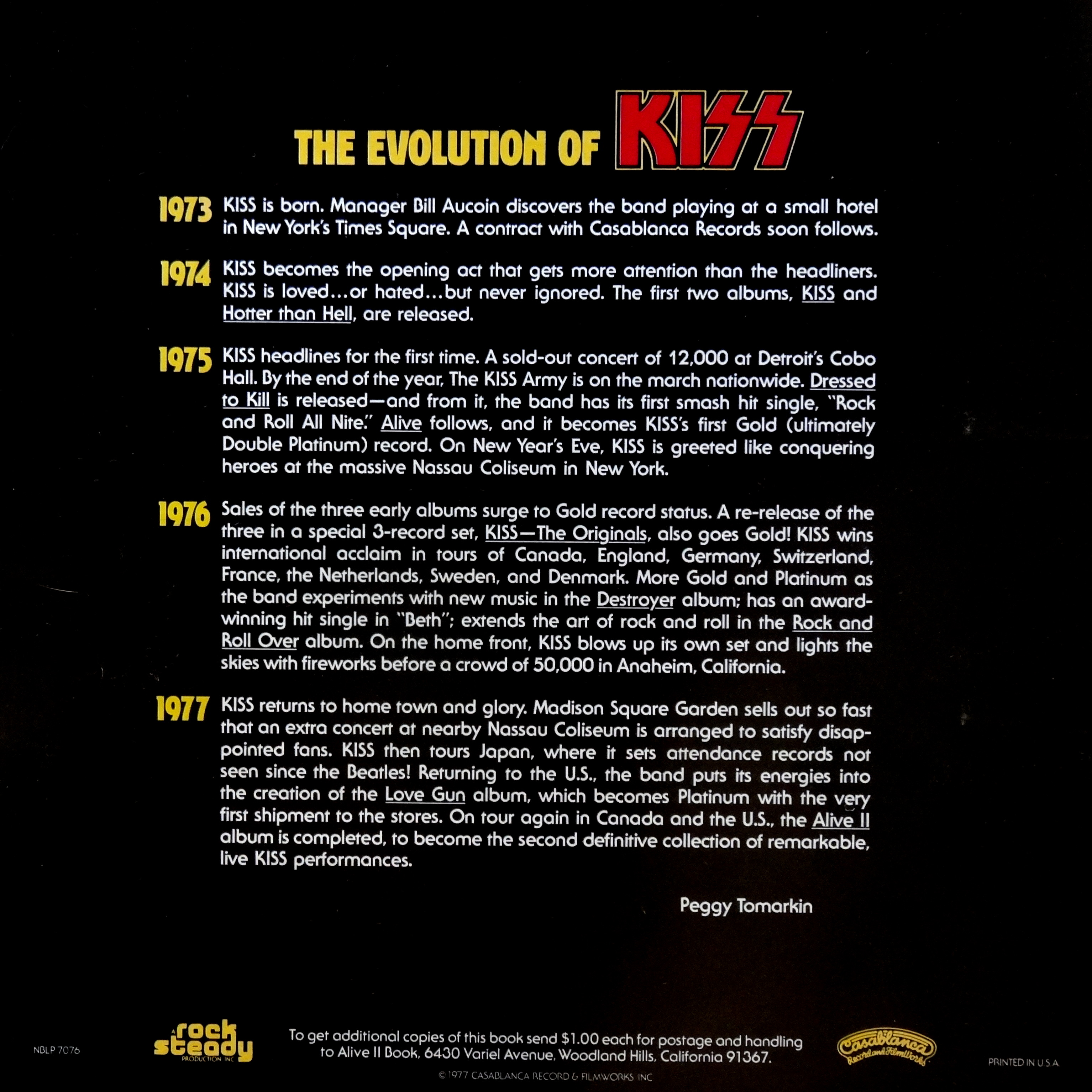But listen: If you think it’s all abut the music, then you weren’t ten years-old in 1977. A new KISS album was like the ultimate box of Fruity Pebbles: full of prizes. Alive II included an album-sized booklet entitled “The Evolution of KISS,” which seems like overkill for a band that hadn’t even celebrated its fourth birthday.