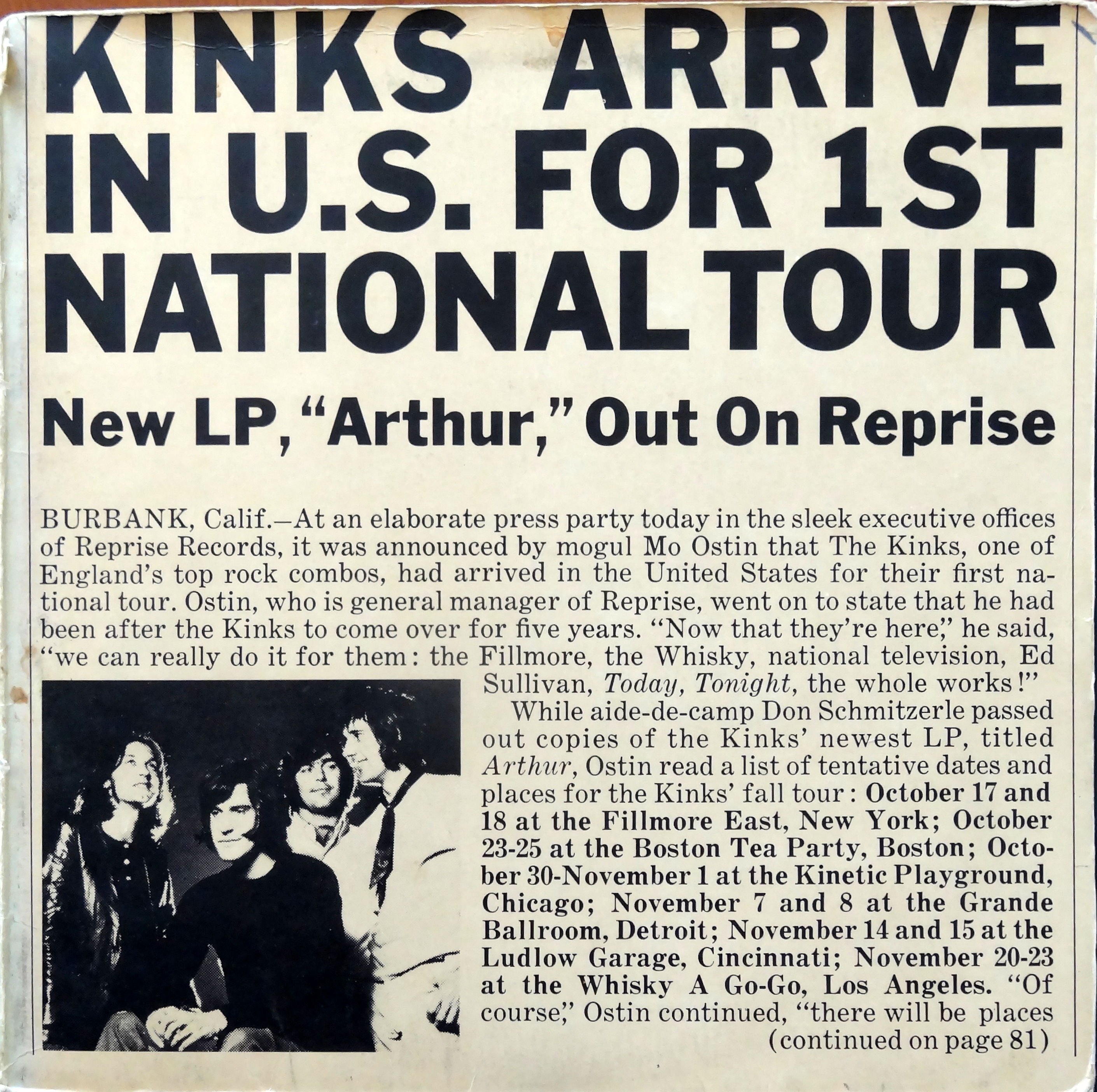 What’s special about this particular edition, though, is that it’s the promo to end all promos. Press kits today are often referred to as “EPKs,” or electronic press kits. They usually include some text, a few photos, maybe a video, and a link to downloads. Back in 1969 the press received similar packages, but Sweet Lennon’s Spectacles were they cooler. The press kit for Arthur includes all sorts of goodies—all photographed below—along with a white label promo. The album itself is no different than the commercial release but that white label makes this edition rarer, and music geeks love rare.