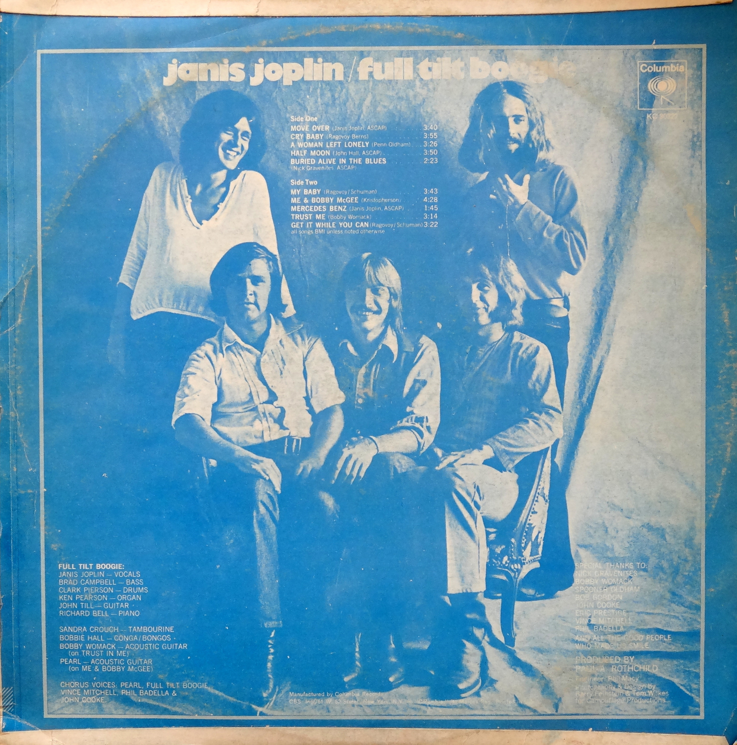 What’s unique about this particular edition is that it’s a Korean reprint from the Tae Do Record Company. I can’t find any information on Tae Do so I don’t know whether they were legitimate licensees or bootleggers, but their sleeves were usually monochromatic and made of pretty thin cardboard. Artwork on this one is slightly different than the American version—both Joplin’s and her backing band’s names have been added to the front cover—but otherwise it’s an exact reproduction right down to the CBS logo on the back.