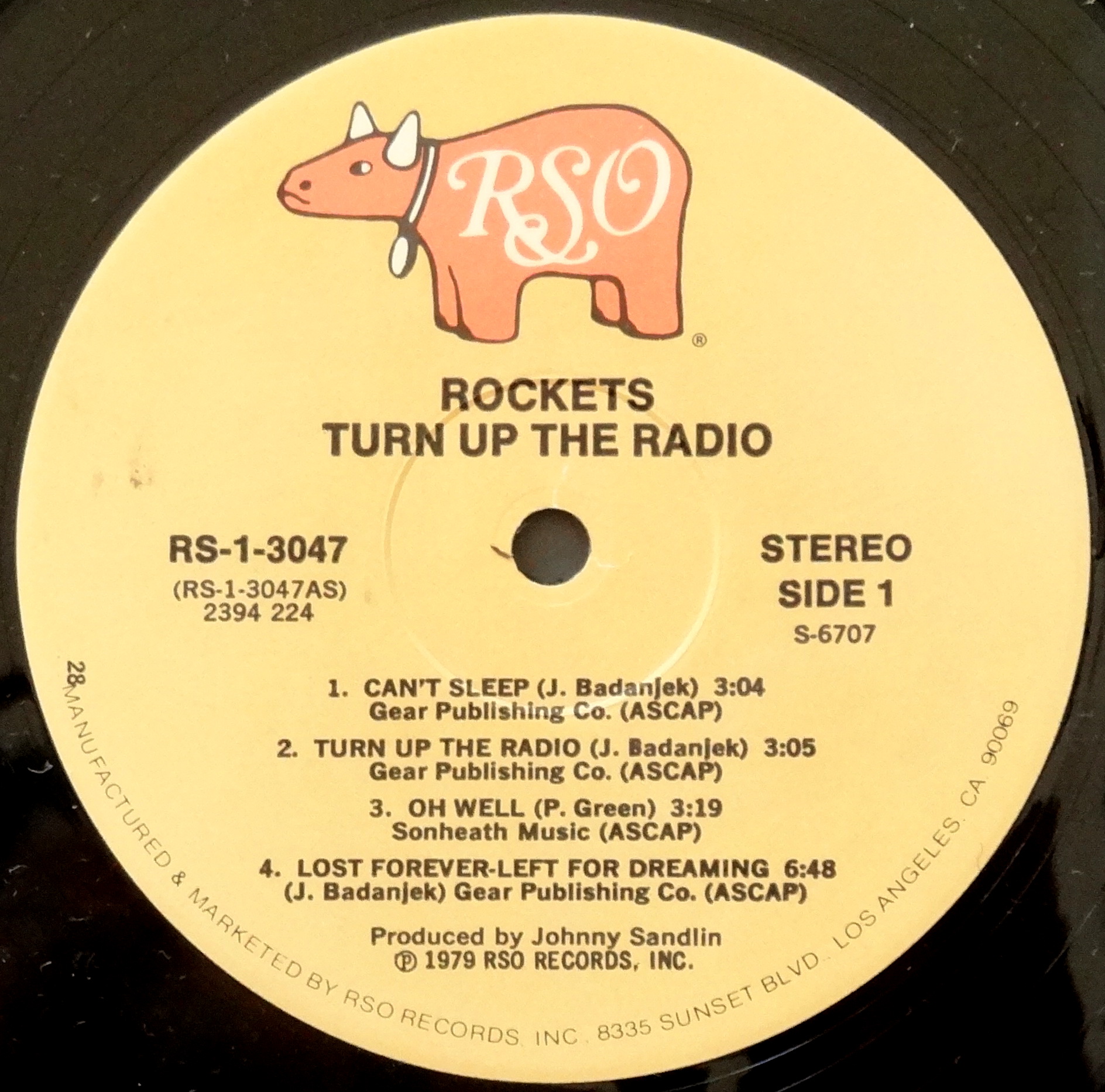 What you’re looking at is a big collection of rock and roll footnotes.Rockets (or The Rockets) grew out of Mitch Ryder and the Detroit Wheels of “Devil With A Blue Dress On” fame. Drummer/vocalist Johnny “Bee” Badanjek and Jim McCarty of the Wheels formed their new band in 1972, adding John Fraga on bass and Marc Marcano on keyboards. A few years later they added front man David Gilbert, who had a short run as lead vocalist on tour for Ted Nugent and the Amboy Dukes.