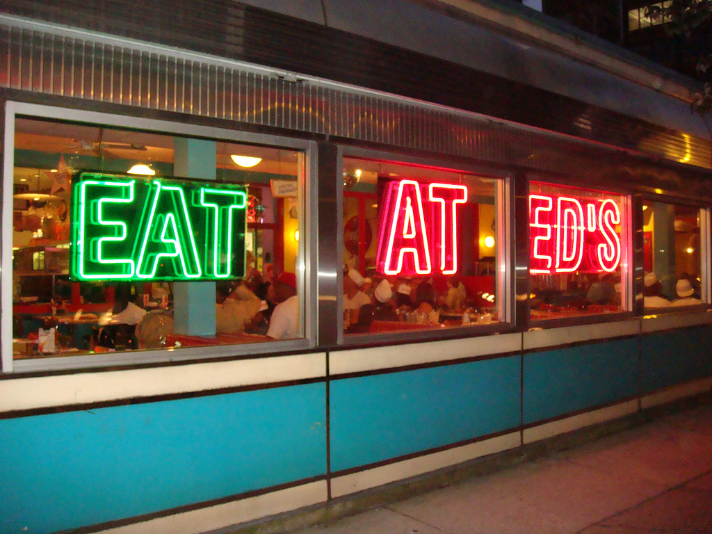 Near MGM’s building stood a ’50s-themed diner named Ed Debevic’s. The stainless steel, red vinyl, and neon were draws, but the real feature was the staff. The waiters and waitresses at Ed’s were actors playing the roles of waiters and waitresses. They took corny fifties sounding names like “Scooter,” tried to stick to mid-century slang, and when “Hand Jive” blared from the restaurant’s sound system they stopped whatever they were doing and danced. It was a lot of fun if you weren’t in a rush.