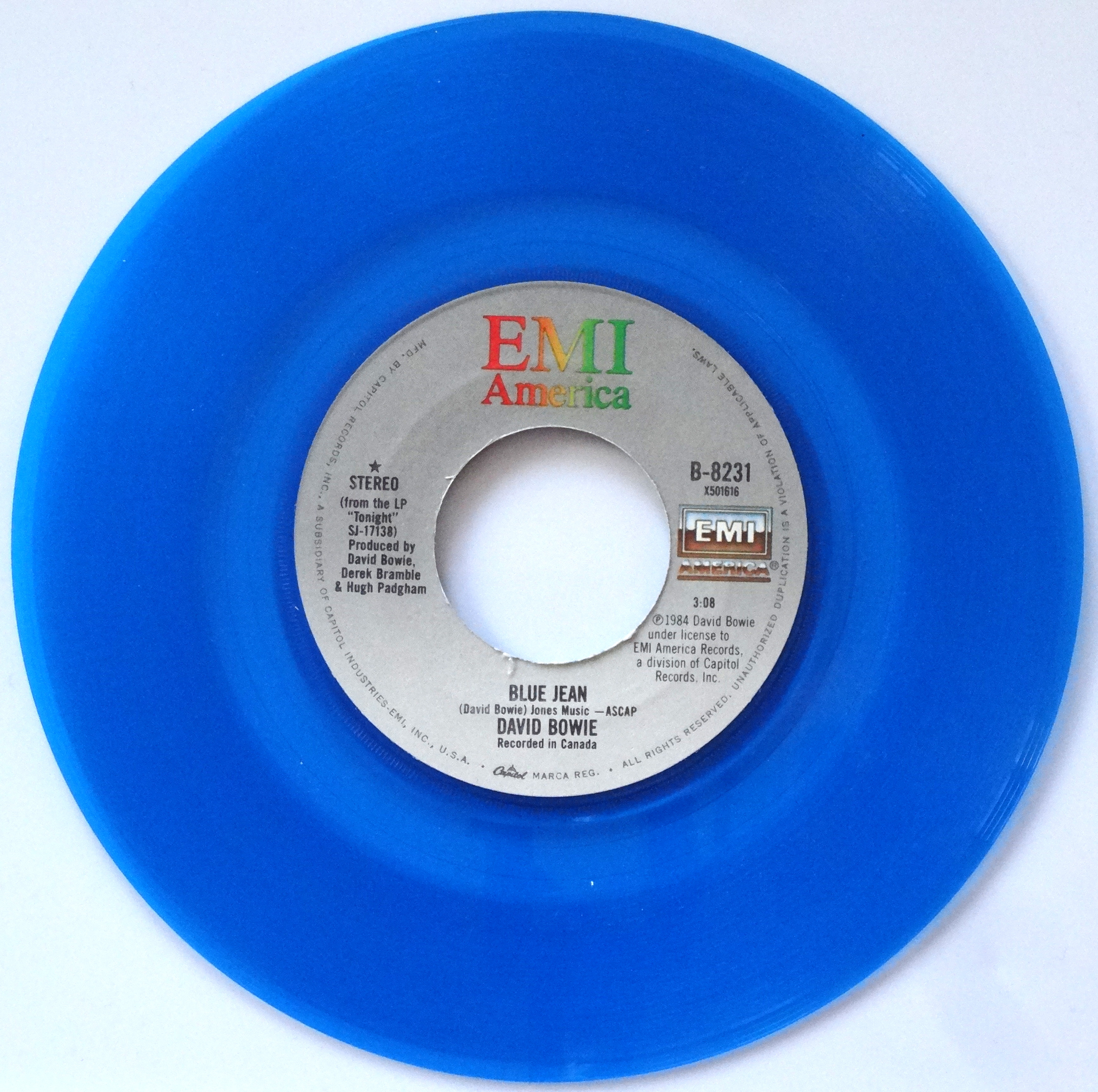 Want a blue vinyl “Blue Jean” for your own stacks? Expect to pay 5 to 15 bucks, so let’s call a tenner a fair price. Happy hunting.