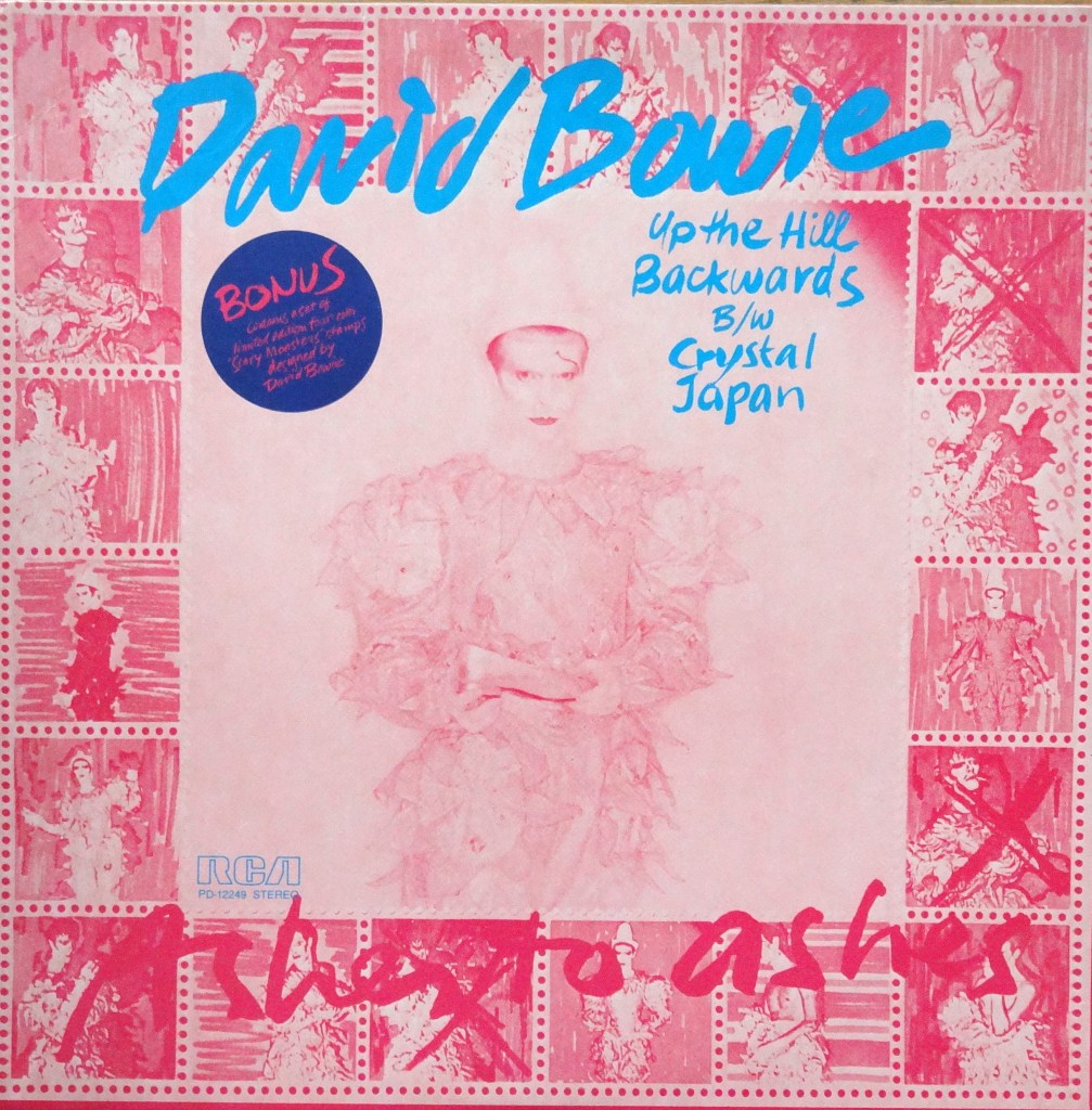 Skip ahead to whenever conversations began for Scary Monsters’ fourth and last single. Album track “Teenage Wildlife” was selected for the b-side, but then Bowie got wind that a Japanese import of “Crystal Japan” was fetching high prices. He made a last minute switch, and there you have it.
