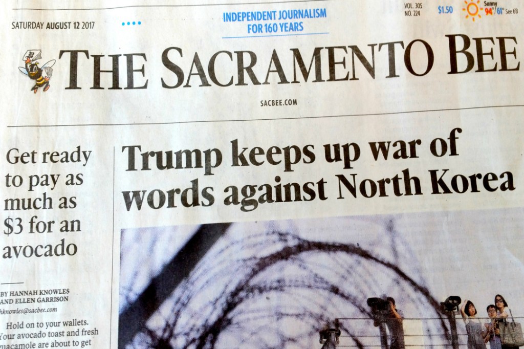 So “above the fold” still retains its intended meaning for me. This morning I stripped the rubber band from my newspaper and learned that “Trump keeps up war of words against North Korea.” That’s certainly above the fold news: an irrational egomaniac with a short fuse threatens the lives of hundreds of millions of Americans. Also, North Korea’s leader is up to something.
