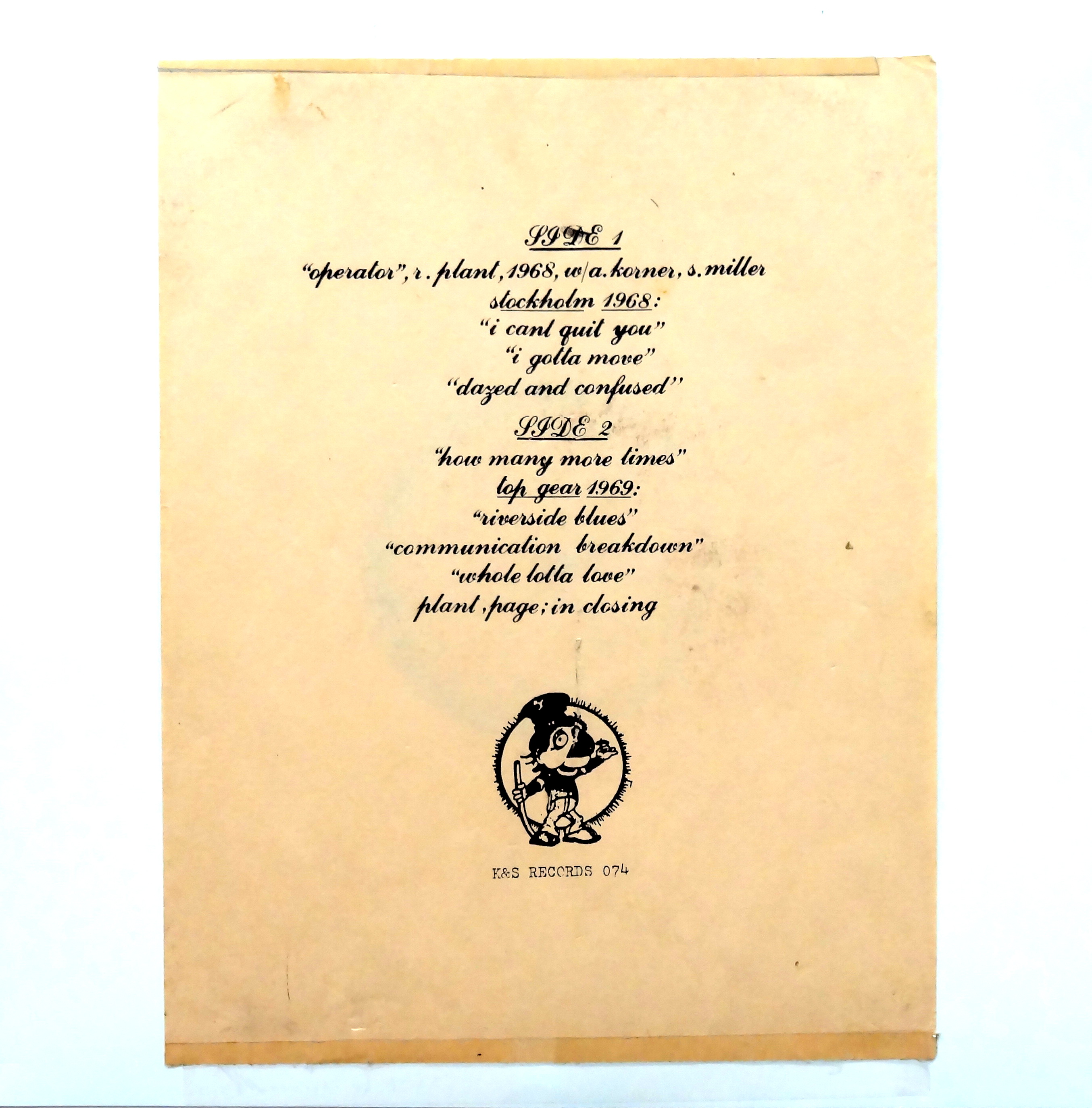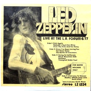 Fortunately for us, though Jimmy Page probably isn’t too thrilled about it, Zeppelin has been bootlegged since the very beginning. My meager collection barely scratches the surface, but whenever I find Zep bootlegs they’re mine.