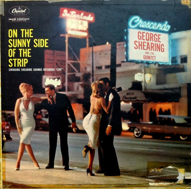 Artist: George Shearing and the Quintet Title: On the Sunny Side of the Strip Year: 1960 Label: Capitol Cover Artist/Designer/Photographer: Unknown, presumed in house art department For more great sleeves, visit the Cheesecake Album Cover Gallery.