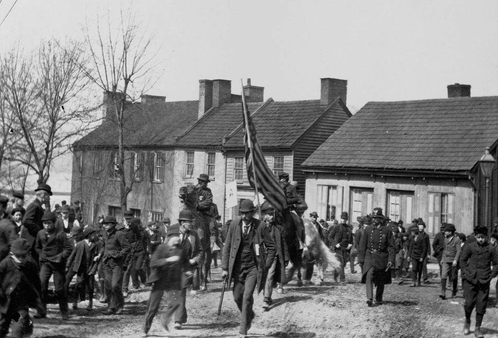 The only bad moment was the mill owner and his bulls. I don’t know if they were Pinkertons, but they were big fellows with blackjacks and billy clubs. “Disburse this mob at once,” the mill owner yelled from behind the safety of the bulls. “The Harrison Steelworks will not be intimidated by your thuggery! Disburse at once!” None of us were even paying him any mind. We were just making our way down the road.