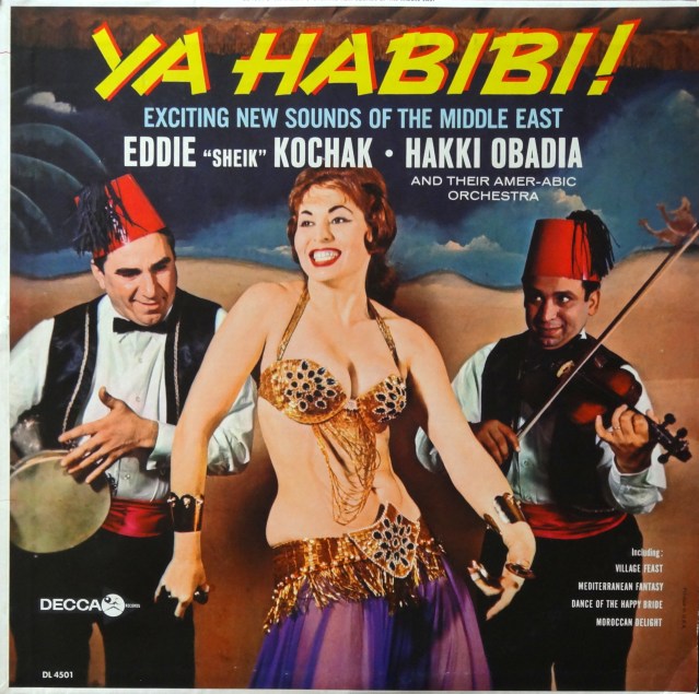Artist: Eddie “Sheik” Kochak, Hakki Obadia Title: Ya Habibi! Exciting New Sounds of the Middle East Year: 1964 Label: Decca Cover Artist/Designer/Photographer: Unknown, presumed in house art department For more great sleeves, visit the Cheesecake Album Cover Gallery.
