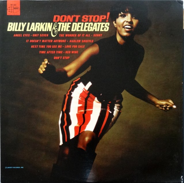 Artist: Billy Larkin & the Delegates Title: Don’t Stop! Year: 1967 Label: World Pacific Art Direction: Woody Woodward Photographer: Ivan Nagy For more great sleeves, visit the Cheesecake Album Cover Gallery.