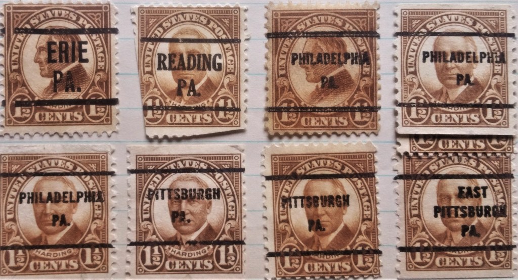 Ebay is a great resource for filling the albums’ empty spaces, though most sellers cling to the myth of the price guide value. Regardless of whether it will fill an empty space, I never bother with a stamp listed at the catalog value. I’m sentimental, but I’m not a sucker. The best deals aren’t on individual stamps anyway, but rather on wholesale lots and collections. If a collection has a few stamps that we need but the asking price is less than the retail value of those few stamps, I might bid on the whole lot. When they arrive, I go through the duplicates and look for ones that will upgrade the ones in my family’s collection. The rest I simply tuck away in hopes that someday I might give them to a young relative or neighbor who wants to try out an old-timey hobby.