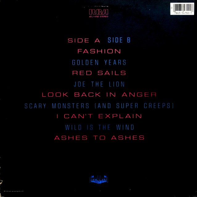The result is one of the more eclectic compilations in the Bowie catalog. While the bulk of the tracks were released as singles–“Fashion,” “Golden Years,” “Look Back In Anger,” “Scary Monsters,” “Ashes To Ashes”–calling this a “greatest hits” package would be wrong. Only the title track broke the top 10 in the United States, and “Wild Is the Wind” wasn’t even released as a single from its original album, 1976’s Station to Station. Rather, the song hit the 45 racks in 1981 when RCA released the Changestwobowie compilation.