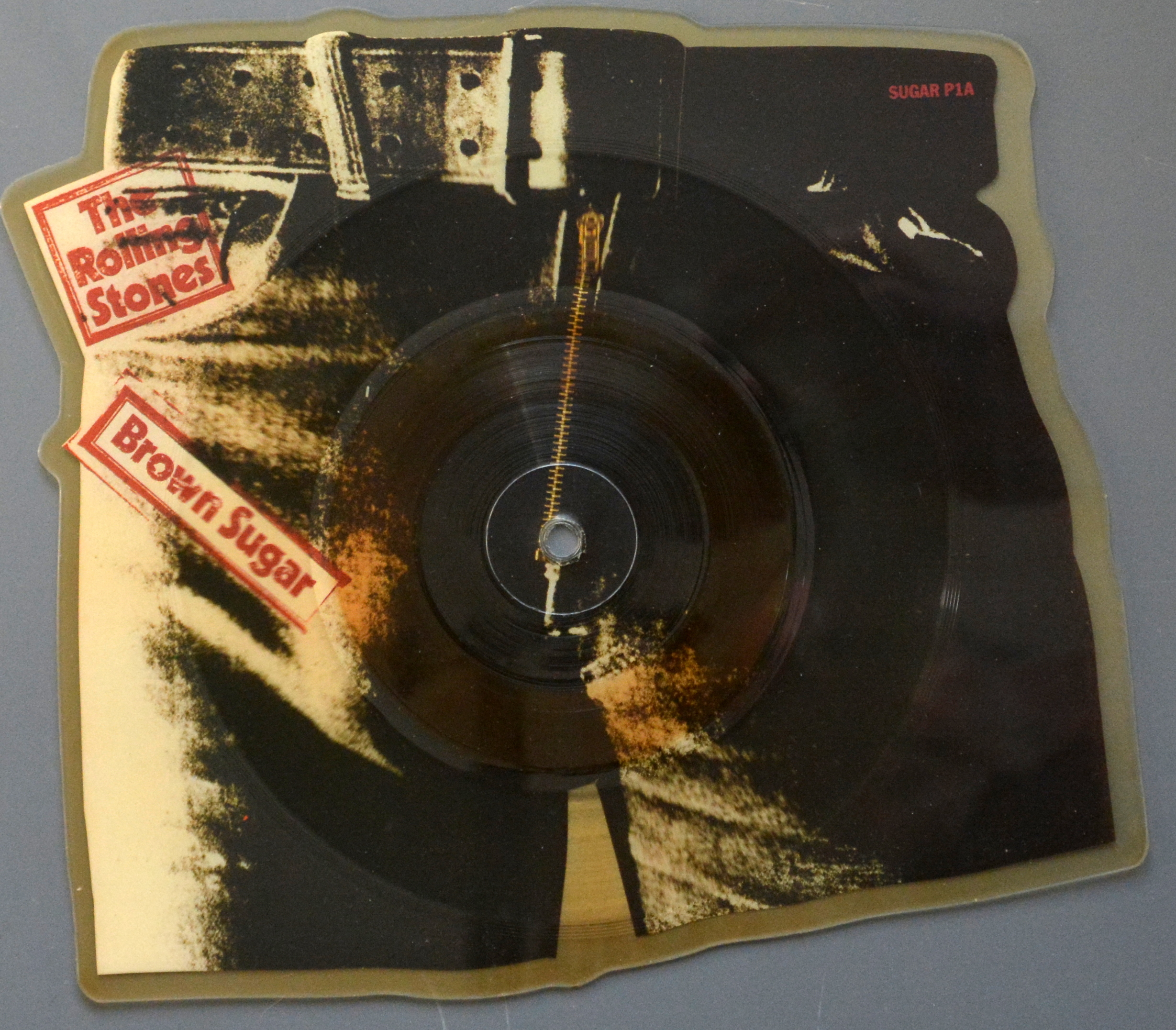 “Brown Sugar” was a number hit for the Stones in 1971, but what’s up with this 1984 shape disc?