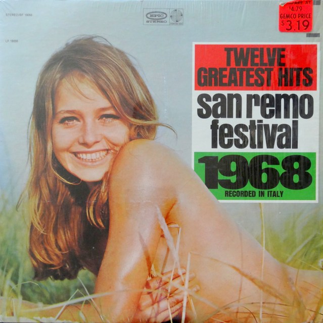 Artist: Various Title: Twelve Greatest Hits: San Remo Festival 1968 Year: 1968-9 Label: Epic Cover Design: Unknown, assumed in-house art department For more great sleeves, visit the Cheesecake Album Cover Gallery.