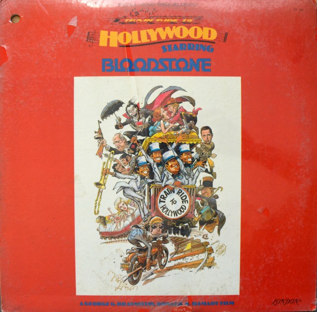 Artist: Bloodstone Title: Train Ride to Hollywood Year: 1975 Label: London Cover Artist: Jack Davis