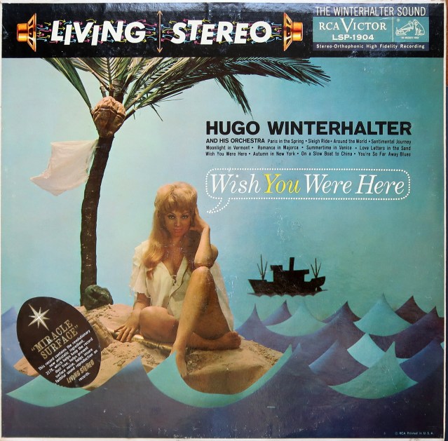 Artist: Hugo Winterhalter and His Orchestra Title: Wish You Were Here Year: 1959 Label: RCA Victor Cover Design: Unknown, assumed in-house art department For more great sleeves, visit the Cheesecake Album Cover Gallery.