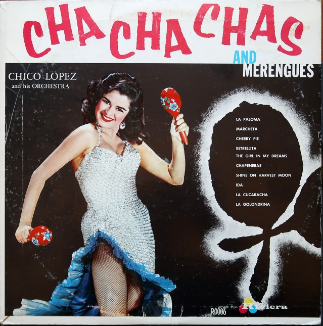 Artist: Chico Lopez and his Orchestra Title: Cha Cha Chas and Merengues Year: 1959 Label: Riviera Cover Design: Unknown, presumed in-house art department For more great sleeves, visit the Cheesecake Album Cover Gallery.