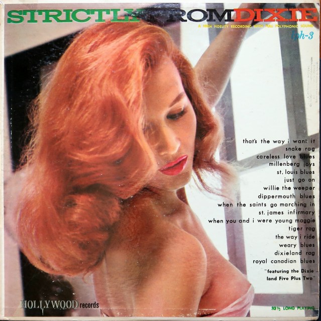 Artist: The Hot Rod Six Plus Two Title: Strictly From Dixie Year: 1956 Label: Hollywood Cover Design: Unknown, presumed in-house art department For more great sleeves, visit the Cheesecake Album Cover Gallery.