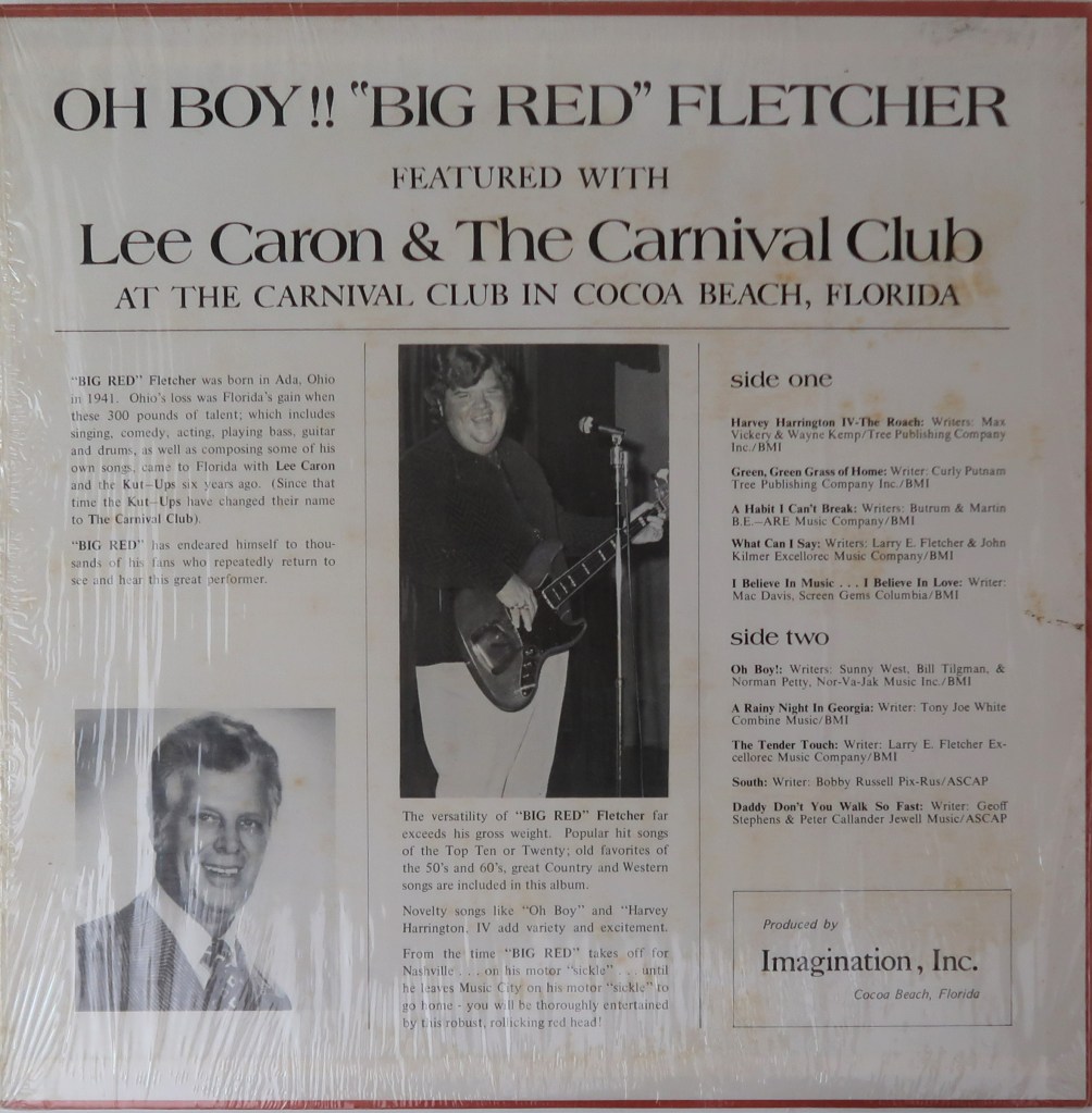 Unfortunately, Red never made it to the big time. Oh Boy!! appears to be his only album, and it was not distributed by a major (or even a minor) record label. My guess is that a couple of thousand copies at most were printed to sell after gigs, so who knows? Maybe that awesome album cover actually was drawn by an amusement park caricaturist. I’d love to hear from friends, fans, family, and old bandmates of Big Red who can fill in some details.