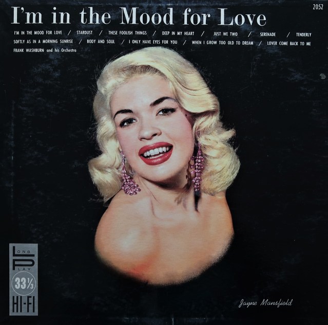Artist: Frank Washburn and His Orchestra Title: I’m in the Mood for Love Year: 1957 Label: Promenade Cover Model: Jayne Mansfield For more great sleeves, visit the Cheesecake Album Cover Gallery.