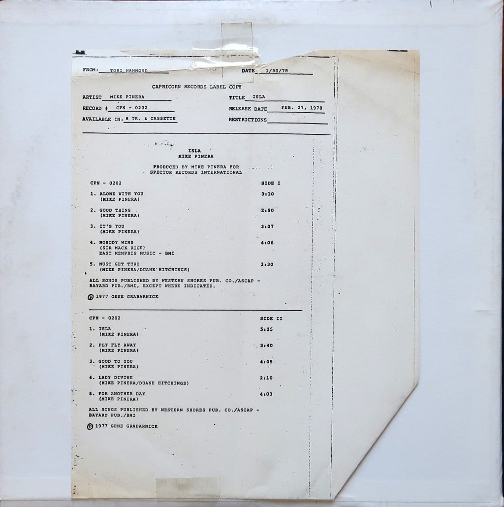 From The Stacks: Mike Pinera, ‘Isla’ (Test Pressing)