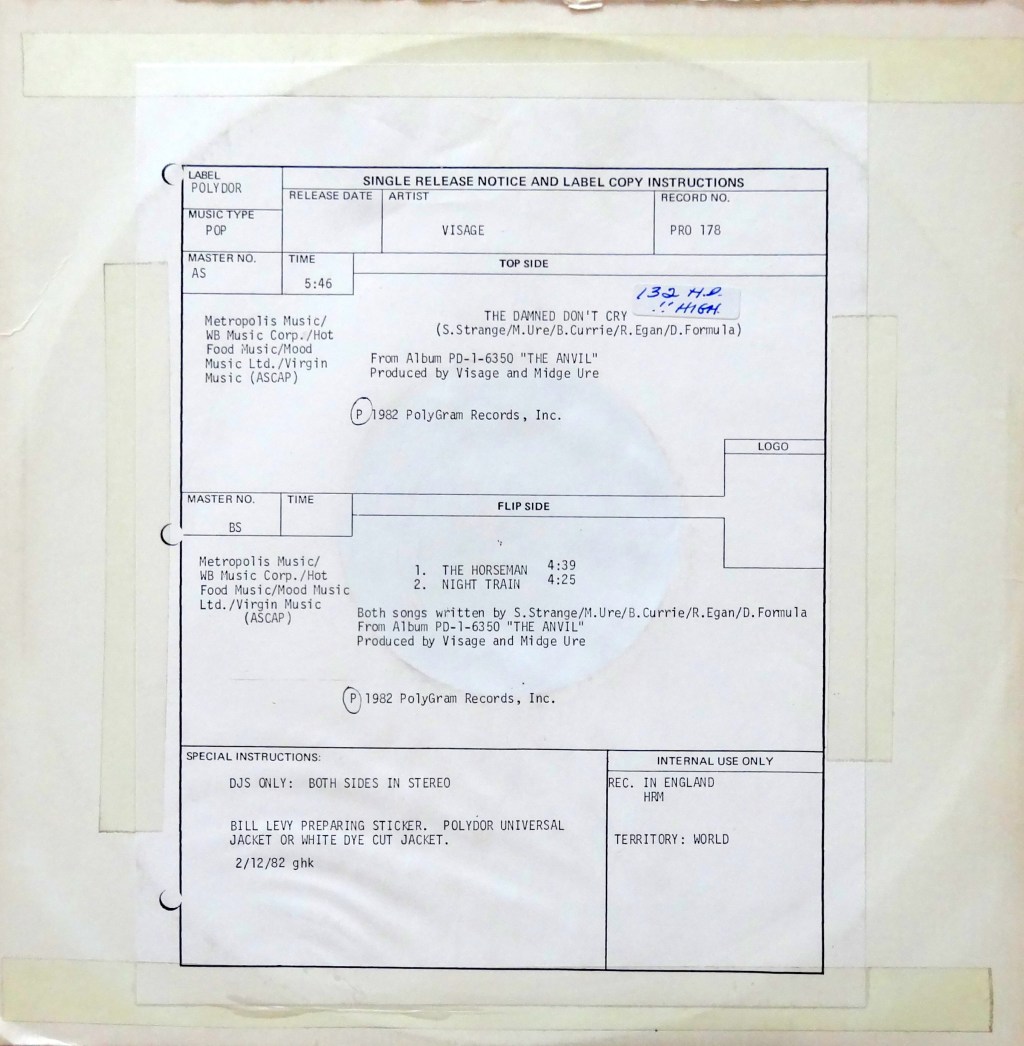From The Stacks: Visage, “The Damned Don’t Cry” (Test Pressing)
